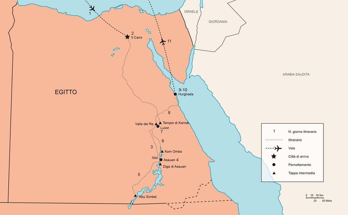 Ritrovo in aeroporto e volo con scalo per Il Cairo. Arrivo e successivo trasferimento privato alla struttura.