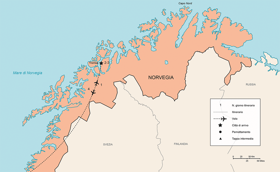 Trasferimento autonomo in bus (o taxi) all’aeroporto di Tromso. Volo di rientro ed arrivo in Italia.