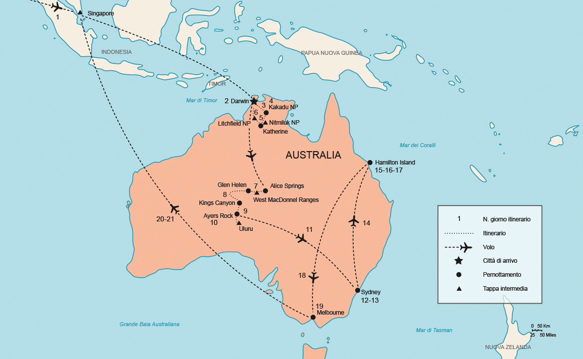 L’Outback e la Great Barrier Reef, i parchi selvaggi e le isole coralline. Questo viaggio nella terra dei canguri racchiude le immagini australiane simbolo ma anche i luoghi più reconditi, dove è necessario salire a bordo di massicci 4×4 per catapultarsi in un mondo primordiale. La prima parte di questo viaggio in Australia si sviluppa nel nord e nel centro dell’isola, prima nel Top End, tra Darwin e il Kakadu National Park, poi nel Red Centre, tra Uluru i Mt Olgas. L’Australia è la meta prediletta per un “on the road” ed a bordo dell’auto potrete scoprire anche alcuni tra i luoghi meno popolari, come il Nitmiluk National Park e il Watarrka National Park (meglio conosciuto come Kings Canyon), parchi prediletti per rigeneranti trekking, lontani dalla folla vicini al nulla. Un viaggio in Australia non può definirsi tale senza una sosta a Sydney, la città più entusiasmante d’Oceania, ricca di punti di interesse, Opera House e Harbour Bridge su tutti.