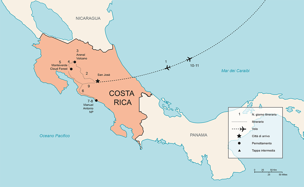 Il Costa Rica, sinonimo di biodiversità ed eco-turismo, è la meta ideale per viaggiatori slow e green. Questo viaggio vi accompagnerà ‘senza pensieri’ attraverso le attrazioni naturalistiche più suggestive del Paese. Dopo un veloce passaggio dalla capitale San Josè, è subito natura allo stato puro: l’Arenal Volcano si presenta dinanzi a voi, giovane, possente ed elegante allo stesso tempo, ricco di grotte, torrenti, cascate, vegetazione e fauna; insomma molto più di un qualsiasi vulcano. Il proseguo del viaggio è sulla stessa linea emotiva. I protagonisti successivi si chiamano Parco Nazionale Rincon de la Vieja e Riserva di Monteverde, che vi lasceranno senza parole, soprattutto per la qualità e quantità della loro fauna: trogoni testarossa, colibrì, tucani, tucanetti smeraldini, gufi dagli occhiali, falchi sghignazzanti, scimmie, armadilli e la lista non è finita. Prima del rientro, sosta al Parco Nazionale Manuel Antonio, finestra sull’Oceano Pacifico, che, nonostante l’alta vocazione turistica, è senza dubbio una delle migliori riserve del Costa Rica.